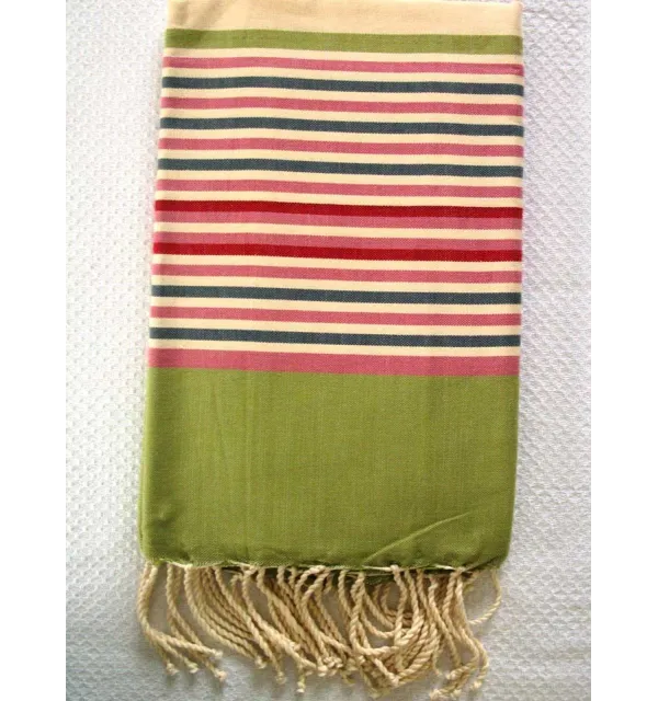superbo fouta verde 100% cotone a righe multicolori